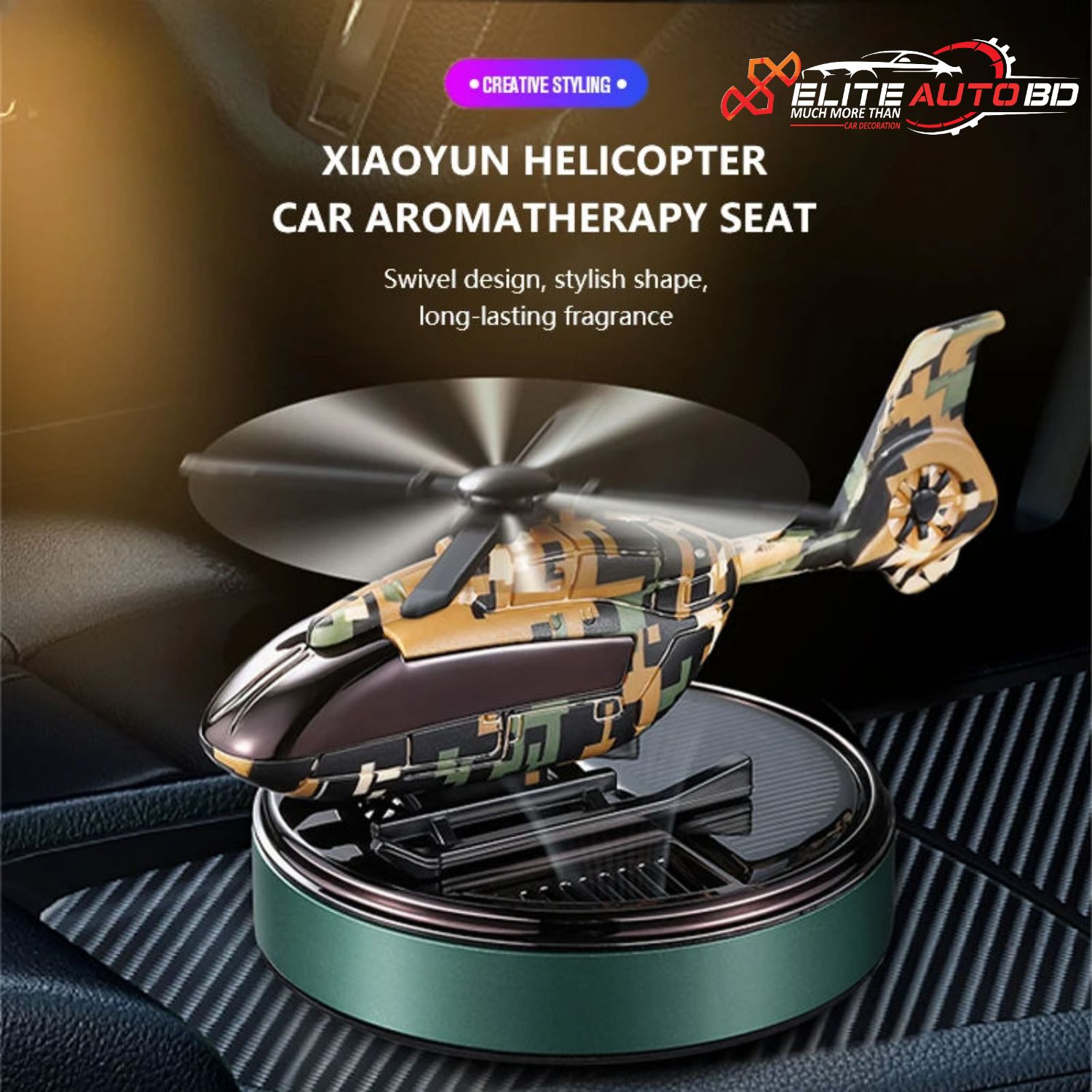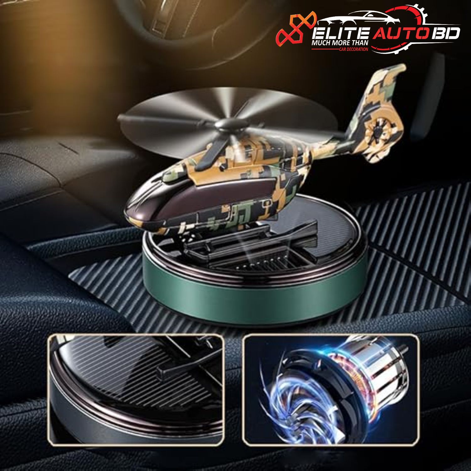 Solar Car Air Freshener: Automatic Rotating Helicopter Dashboard Fragrance Diffuser | PS 37 | Elite Auto BD.