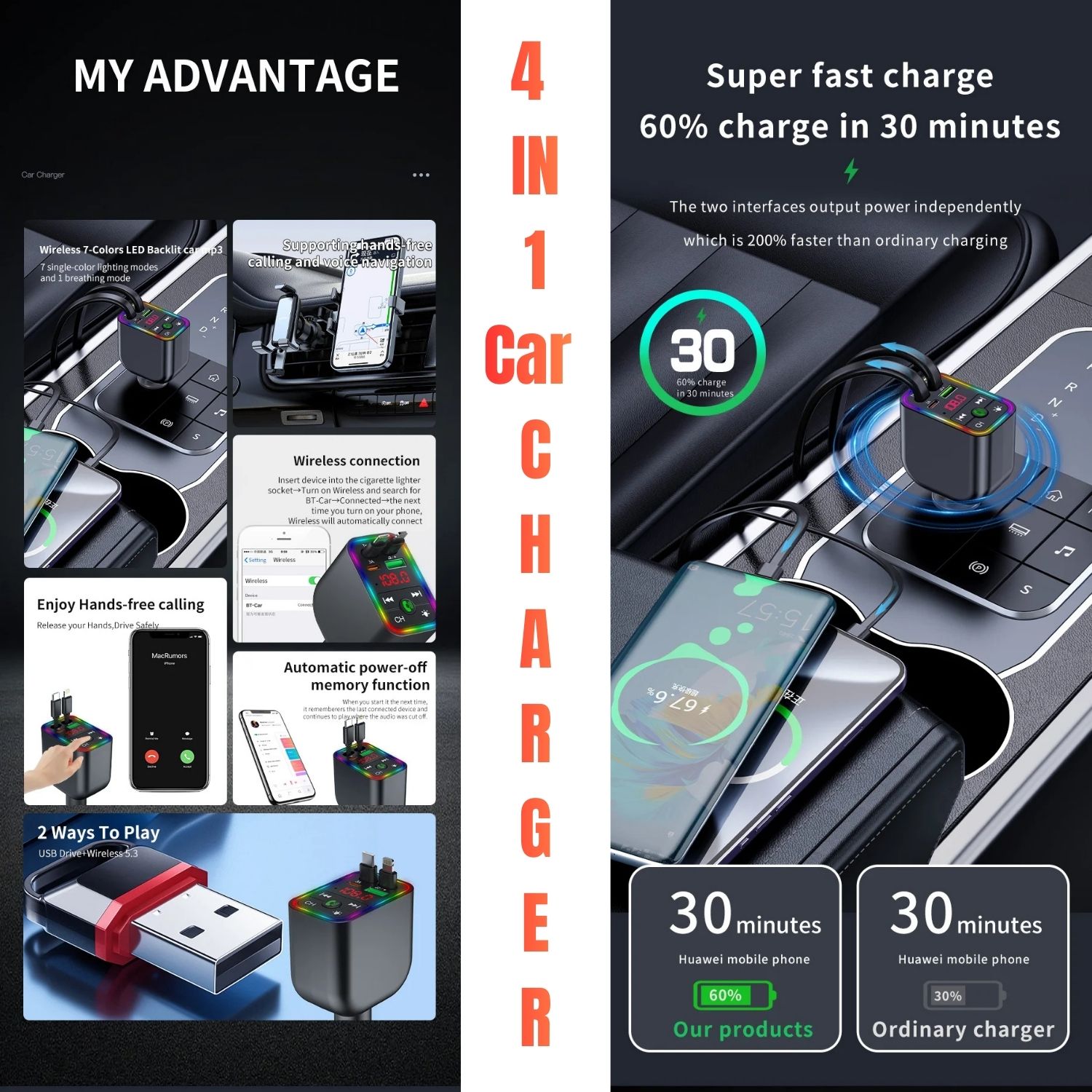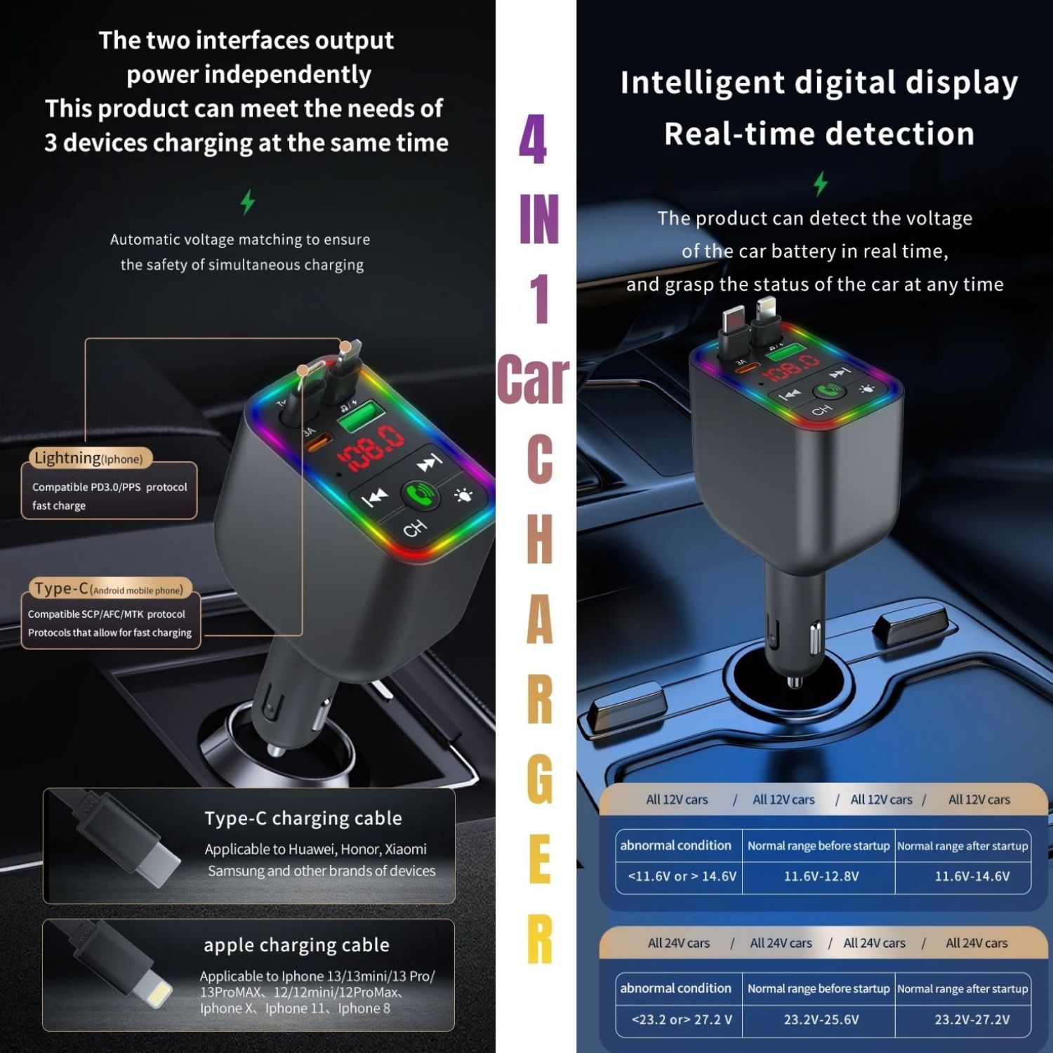 4-in-1 Bluetooth FM Transmitter Car Charger Adapter | Hands-Free Calling & Dual USB Fast Charging for 12V-24V Cars, Trucks, SUVs | CHARGER | Elite Auto BD
