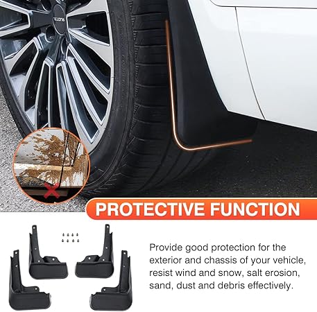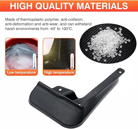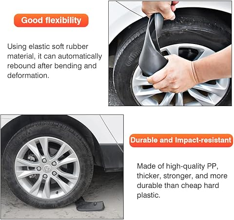 টেকসই এবং প্রভাব-প্রতিরোধী: উচ্চ-মানের পিপি দিয়ে তৈরি, সস্তা হার্ড প্লাস্টিকের চেয়ে ঘন, শক্তিশালী এবং আরও টেকসই, যাতে তারা উচ্চ গতিতে তাদের আকৃতি বজায় রাখতে পারে এবং কার্যকরভাবে টায়ার স্প্ল্যাশিং প্রতিরোধ করতে পারে।