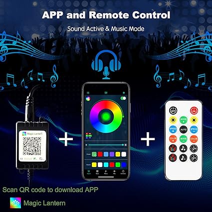 - APP & Remote Control: You can easily control one or multiple sets of interior car lights by APP or remote. Turn lights on or off, dim or brighten, change colors, modes, DIY, timing and even adjust the speed of mode.