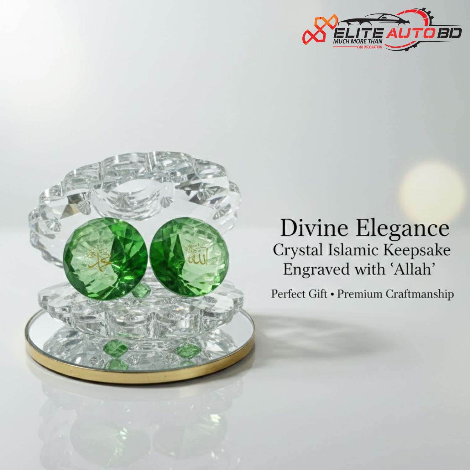 Elite Auto BD.Crystal Islamic Showpiece – Elegant Display of Allah & Prophet Muhammad ﷺ Name for Car, Home & Office Décor