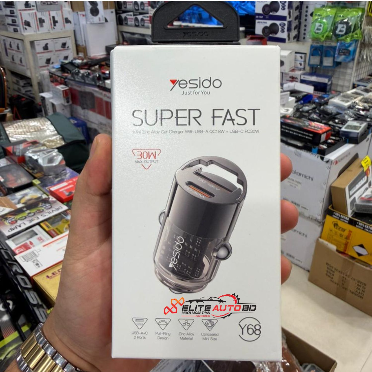 esido Y68 Aluminum Alloy Super Fast Car Charger - 30W Dual USB Adapter | Elite Auto BD