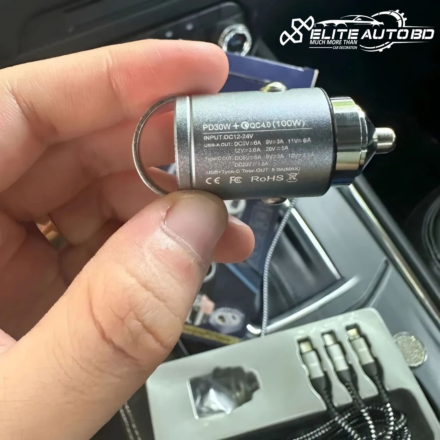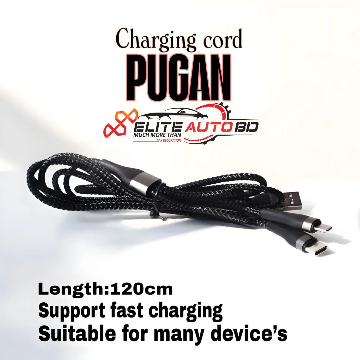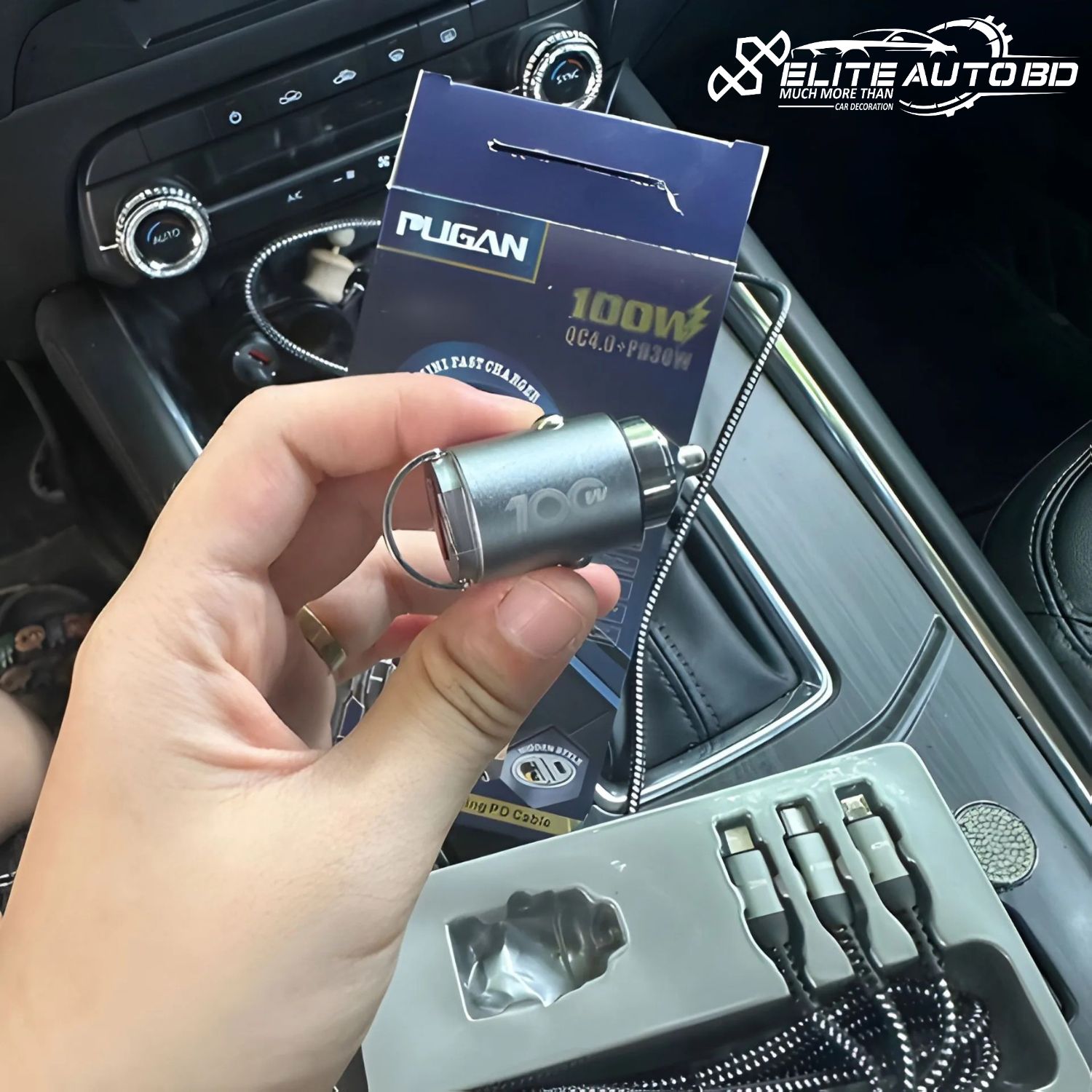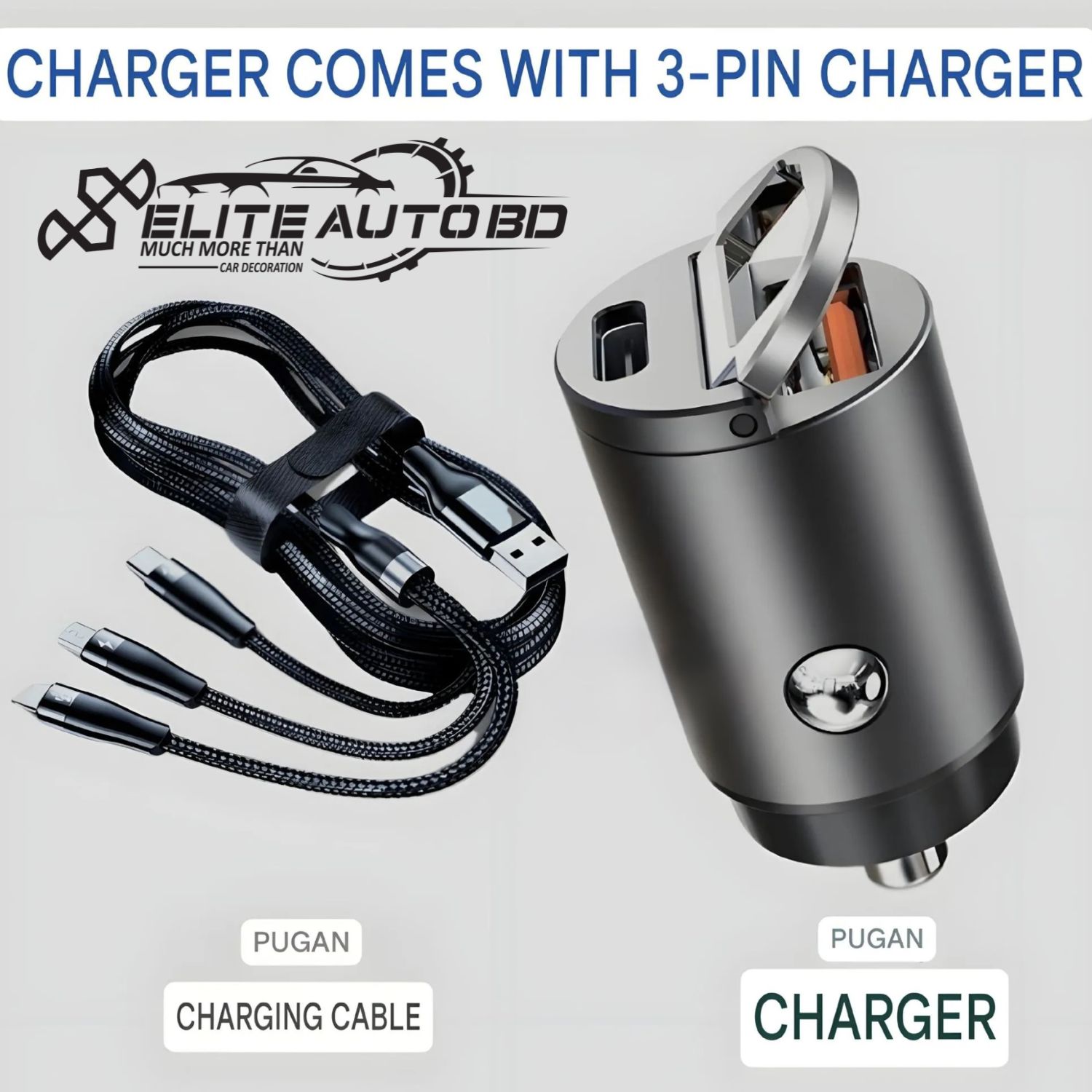Genuine Pugan 100W Super Fast Car Charger with 3-in-1 PD Cable & Dual USB Ports | CHARGER | Elite Auto BD