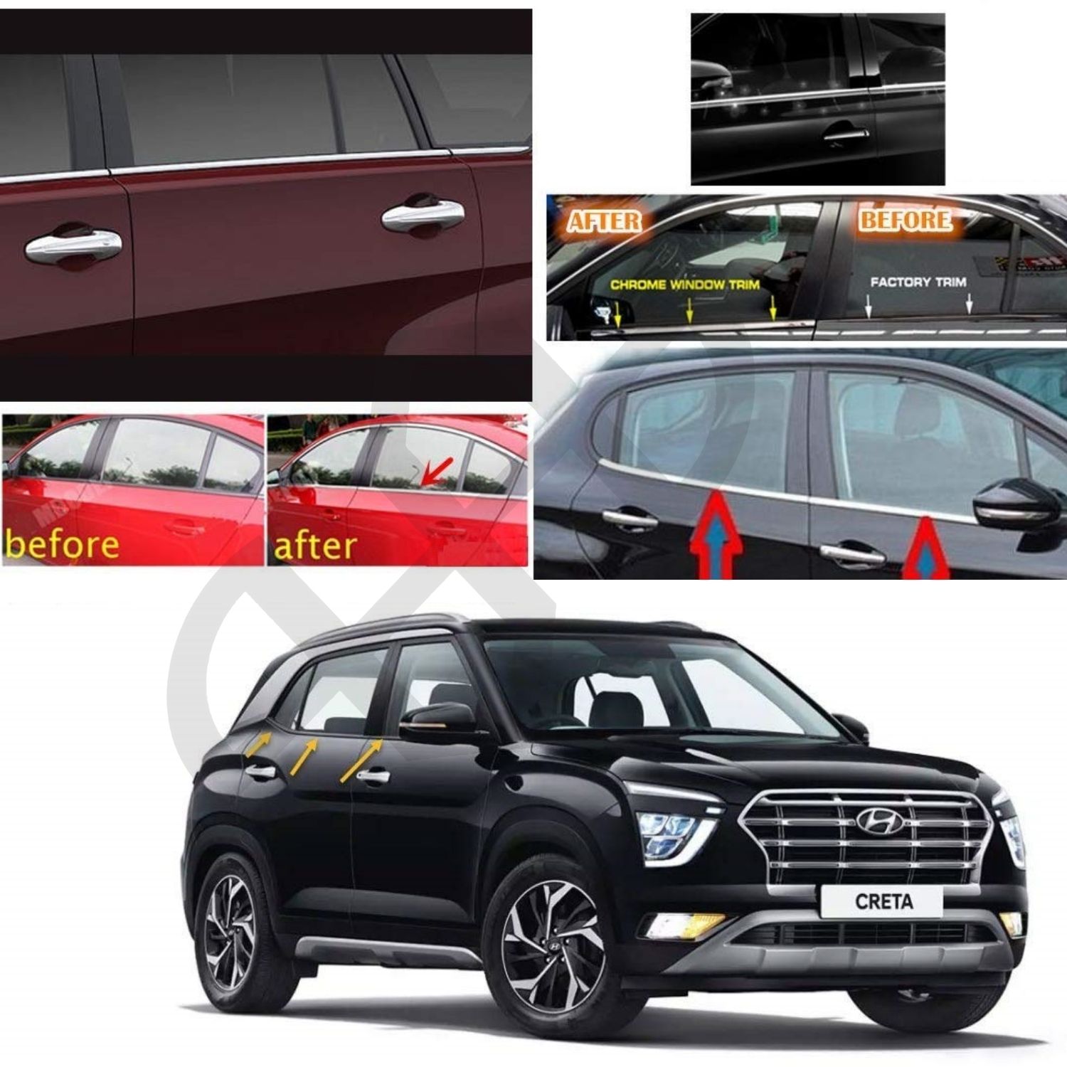 Hyundai Creta Window Chrome Garnish – 100% Rust Free Guaranteed Lower Window Garnish Compatible with Hyundai Creta 2020-2024 Models - Chrome Color (Pack of 4) | CRETA 07 | Elite Auto BD