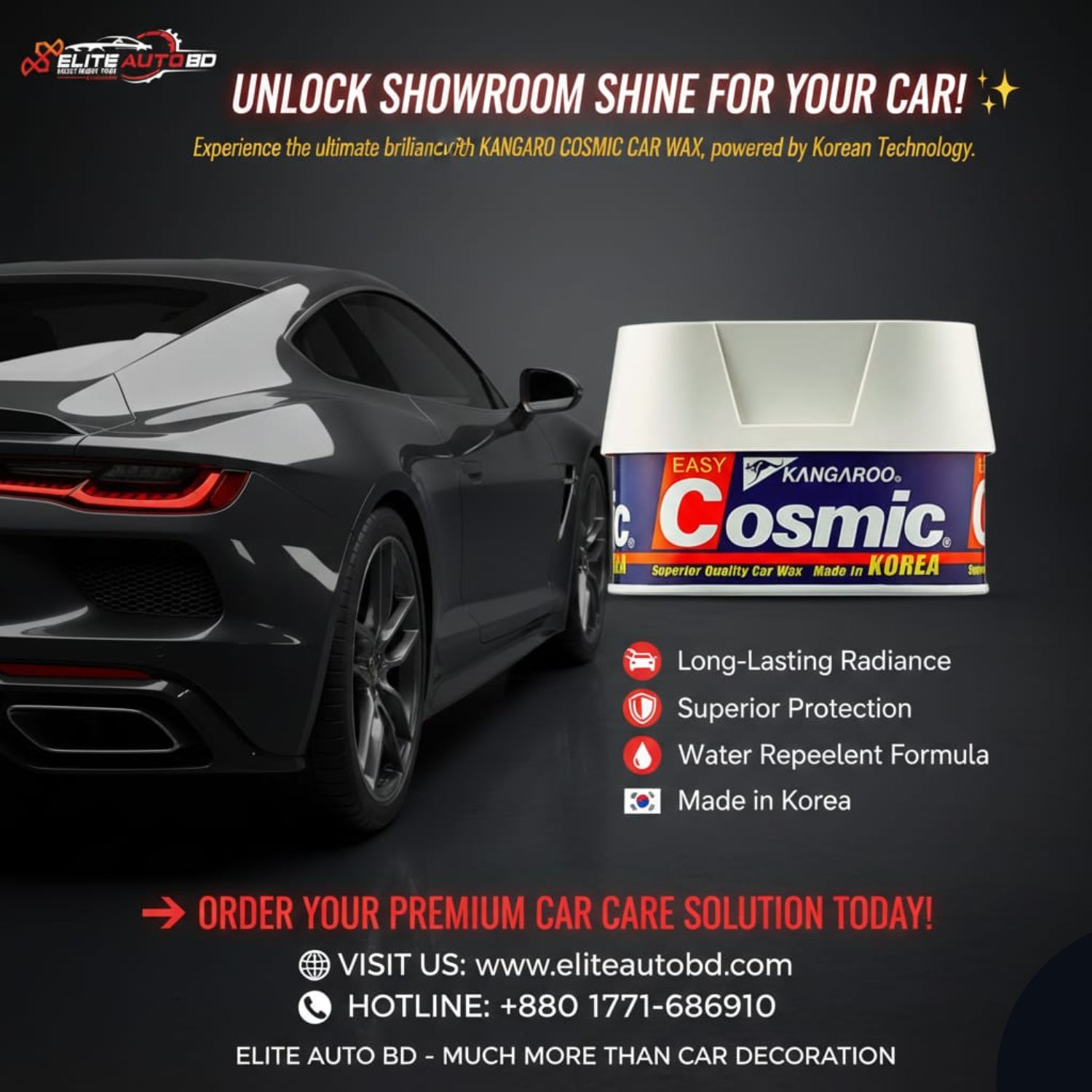 Kangaroo Cosmic Easy Car Wax Polish (Made in Korea) | Superior Quality, Long-Lasting Shine for All Colored Cars | Kangaroo | CC 13 | Elite Auto BD.