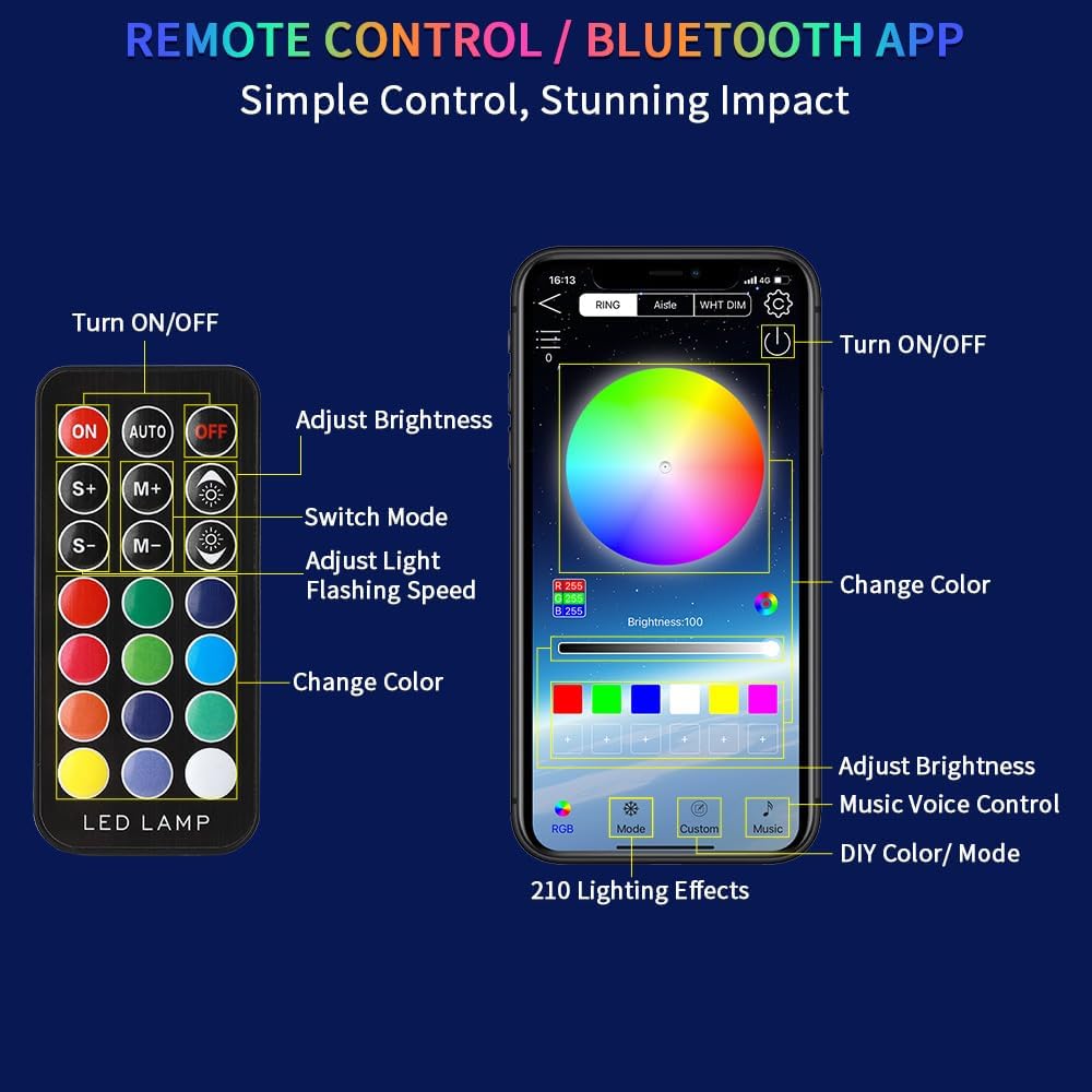 - APP & Remote Control: Never worry about misplacing your remote. Turn on/off, adjust brightness/speed, change colors, and explore dynamic modes—all with the convenience of app-controlled features. The various modes of the LED hood light allow you to customize your own ambiance, whether it's crafting a soothing glow or a vibrant display.