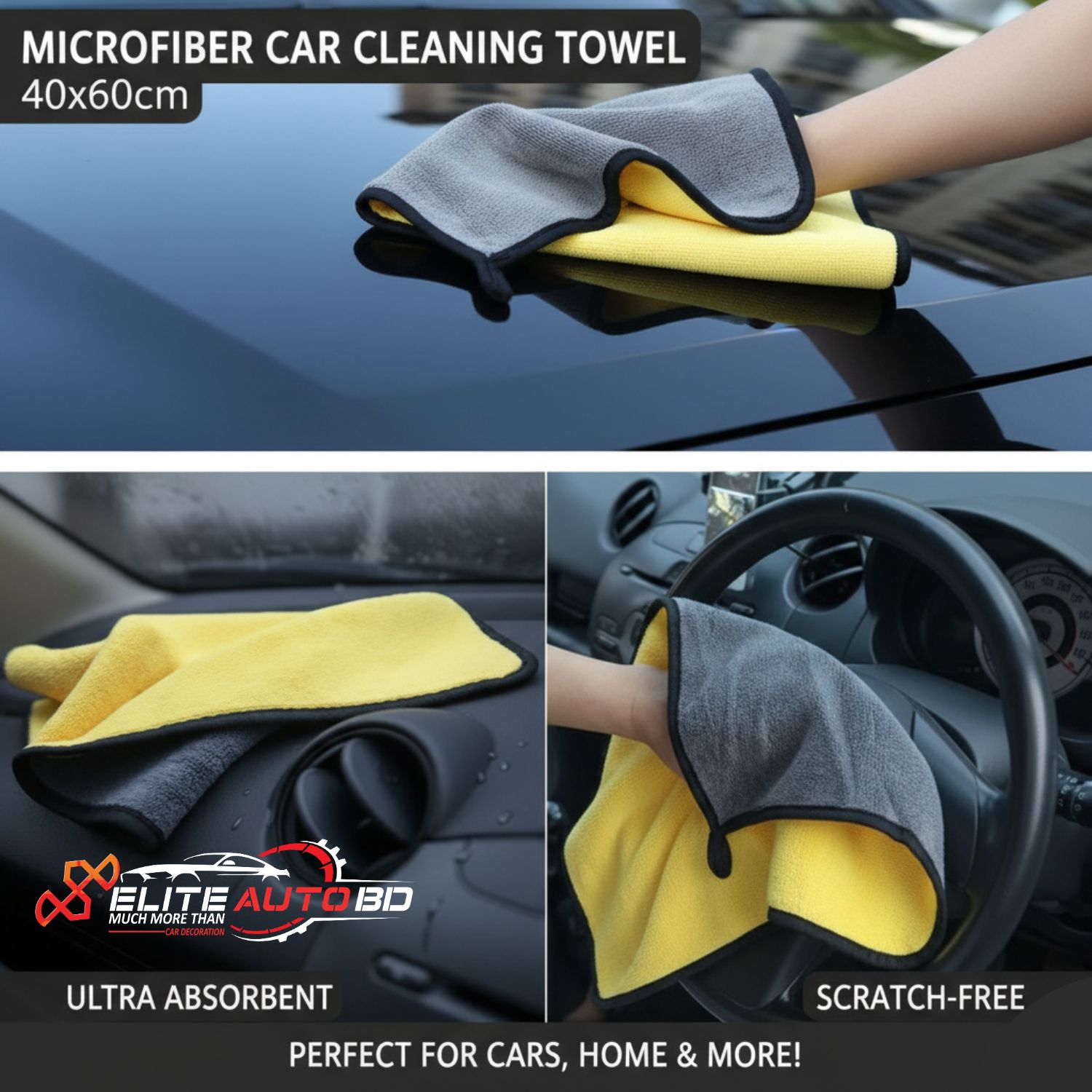 Microfiber Car Cleaning Towel 40x60cm Super Absorbent Scratch-Free Auto Detailing Cloth | CC 02 | Elite Auto BD.