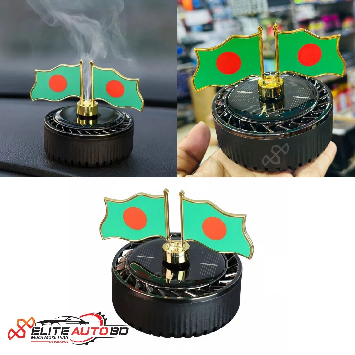 Premium Bangladesh Flag Solar Rotating Car Dashboard Showpiece Air Freshener | PS 59 | Elite Auto BD.