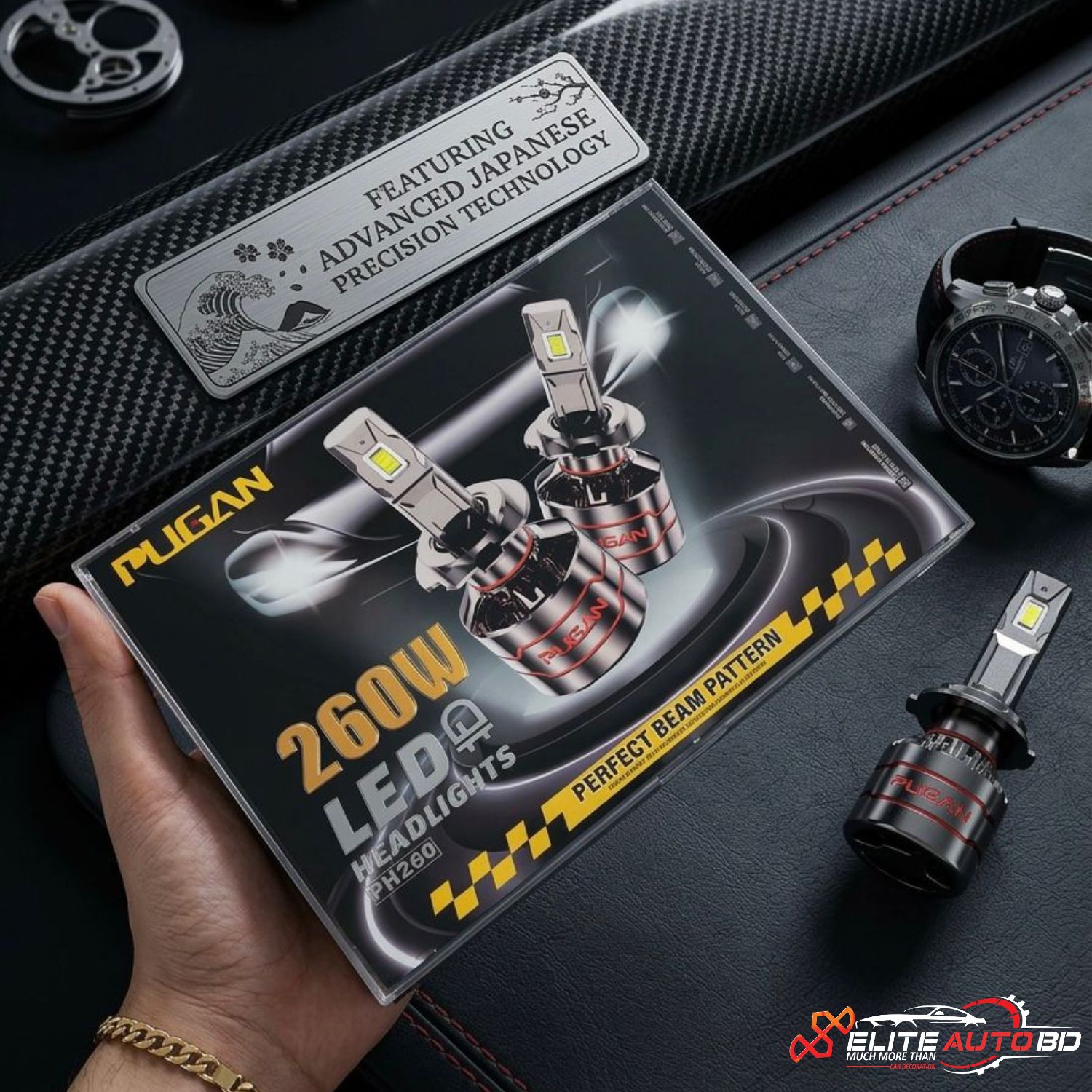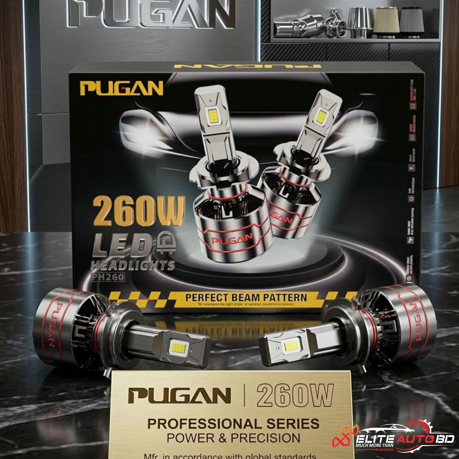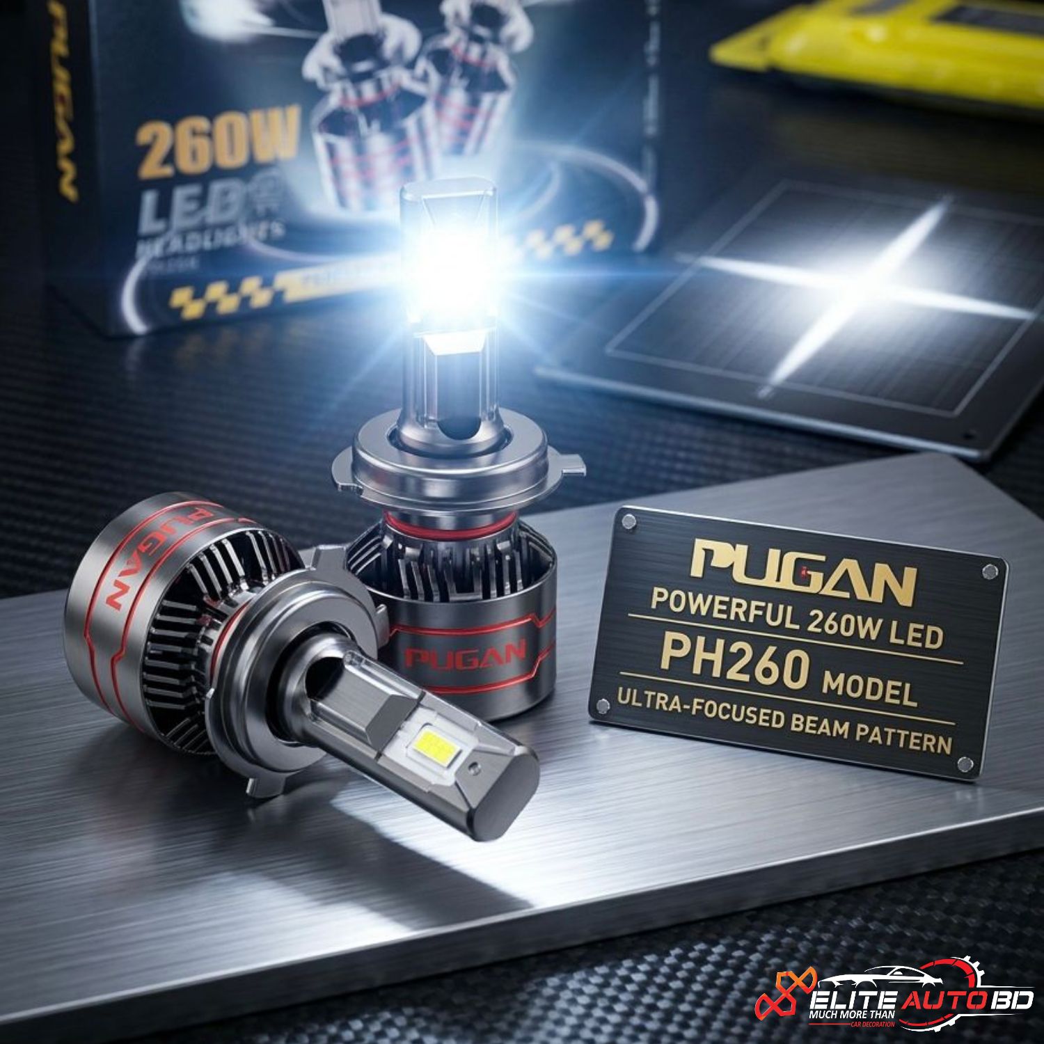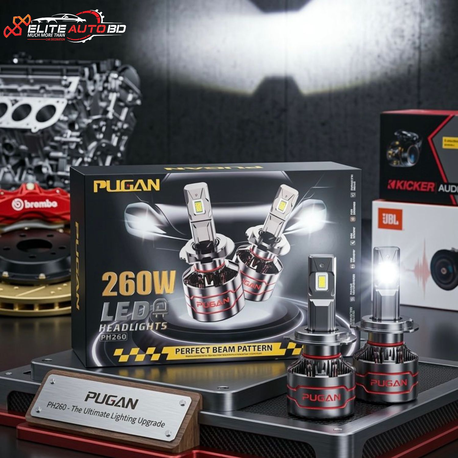 PUGAN 260W LED Headlight for Cars: Ultra-Bright 6000K Cool White (H4, H11, 9005/9006) – Available at |CHL 22 | Elite Auto BD
