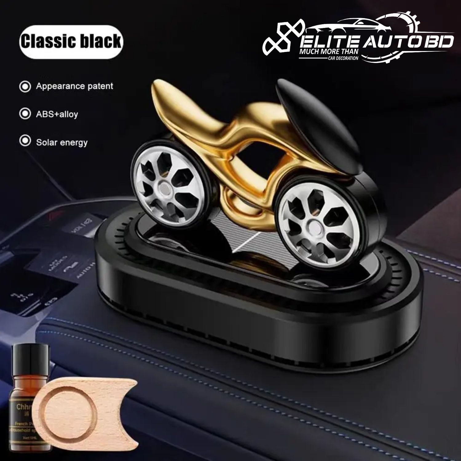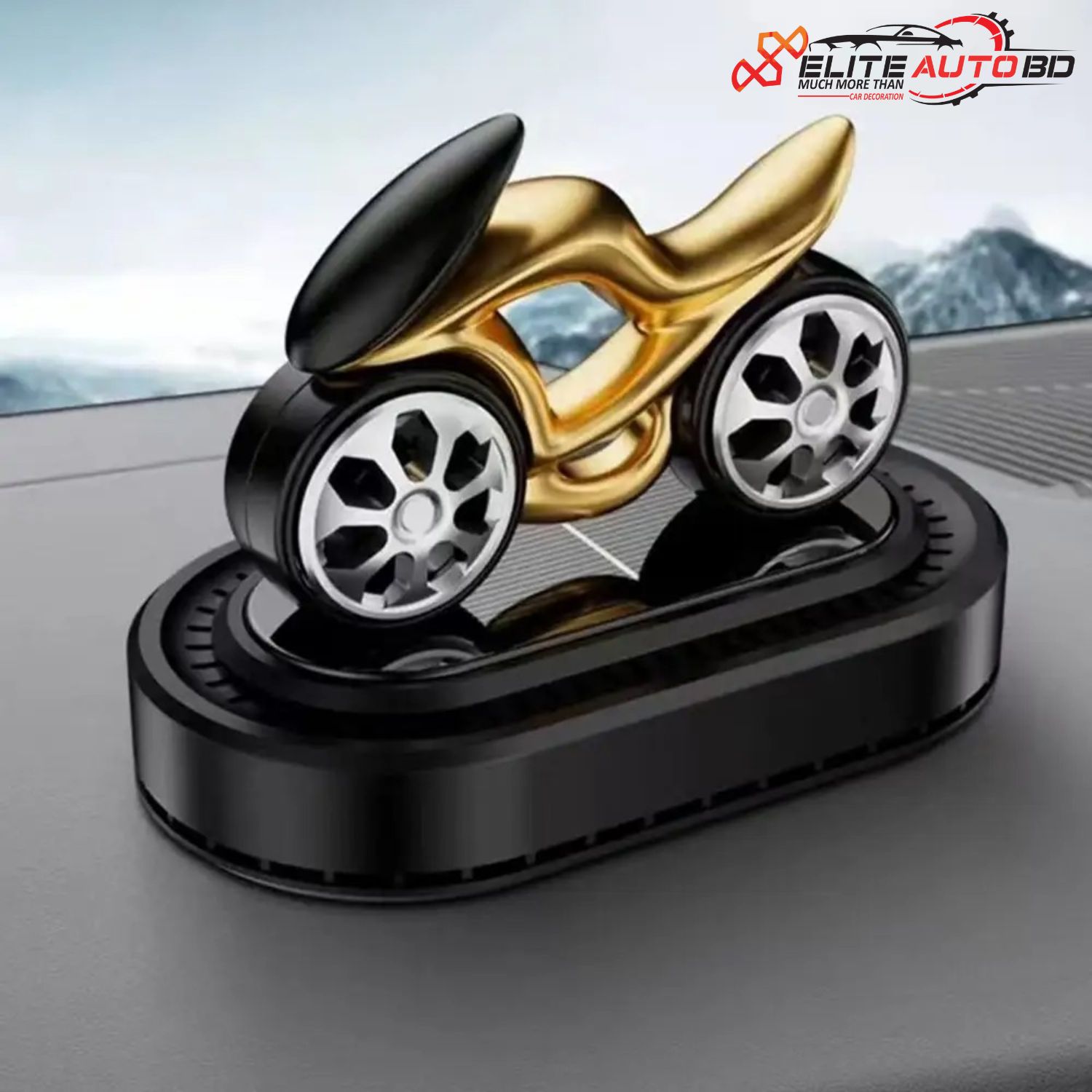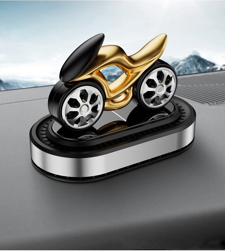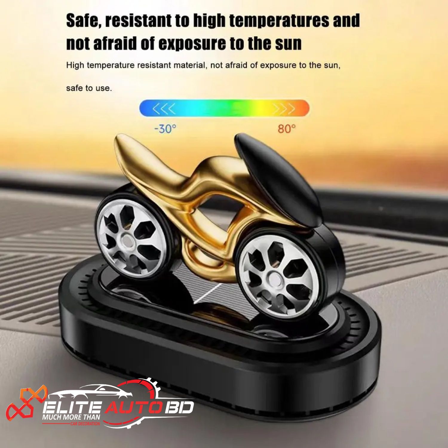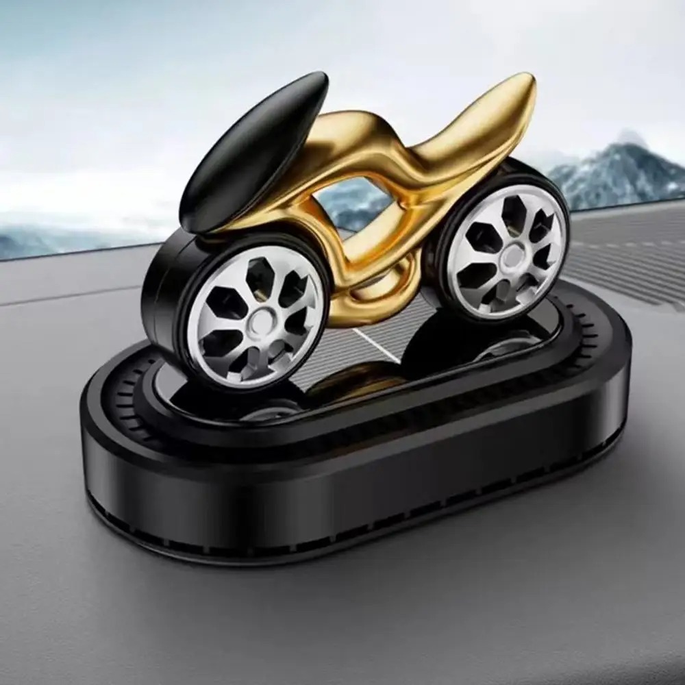 Bring freshness and style to your car with this motorcycle-shaped solar-powered air freshener. Designed to rotate with sunlight, it releases a natural, long-lasting fragrance that keeps your car interior fresh and inviting.