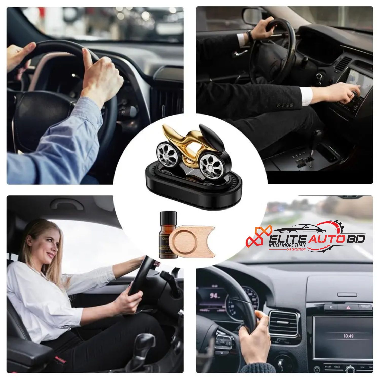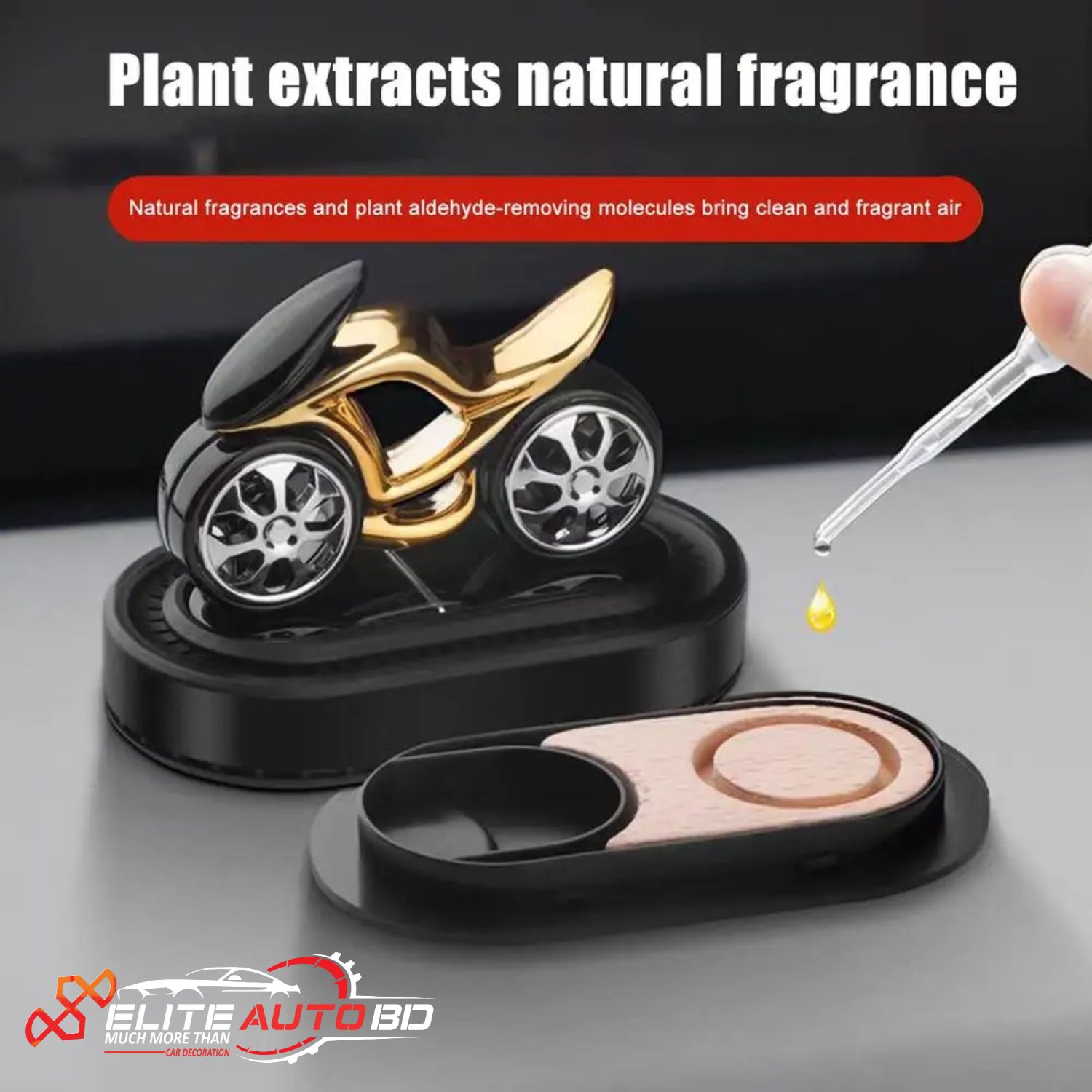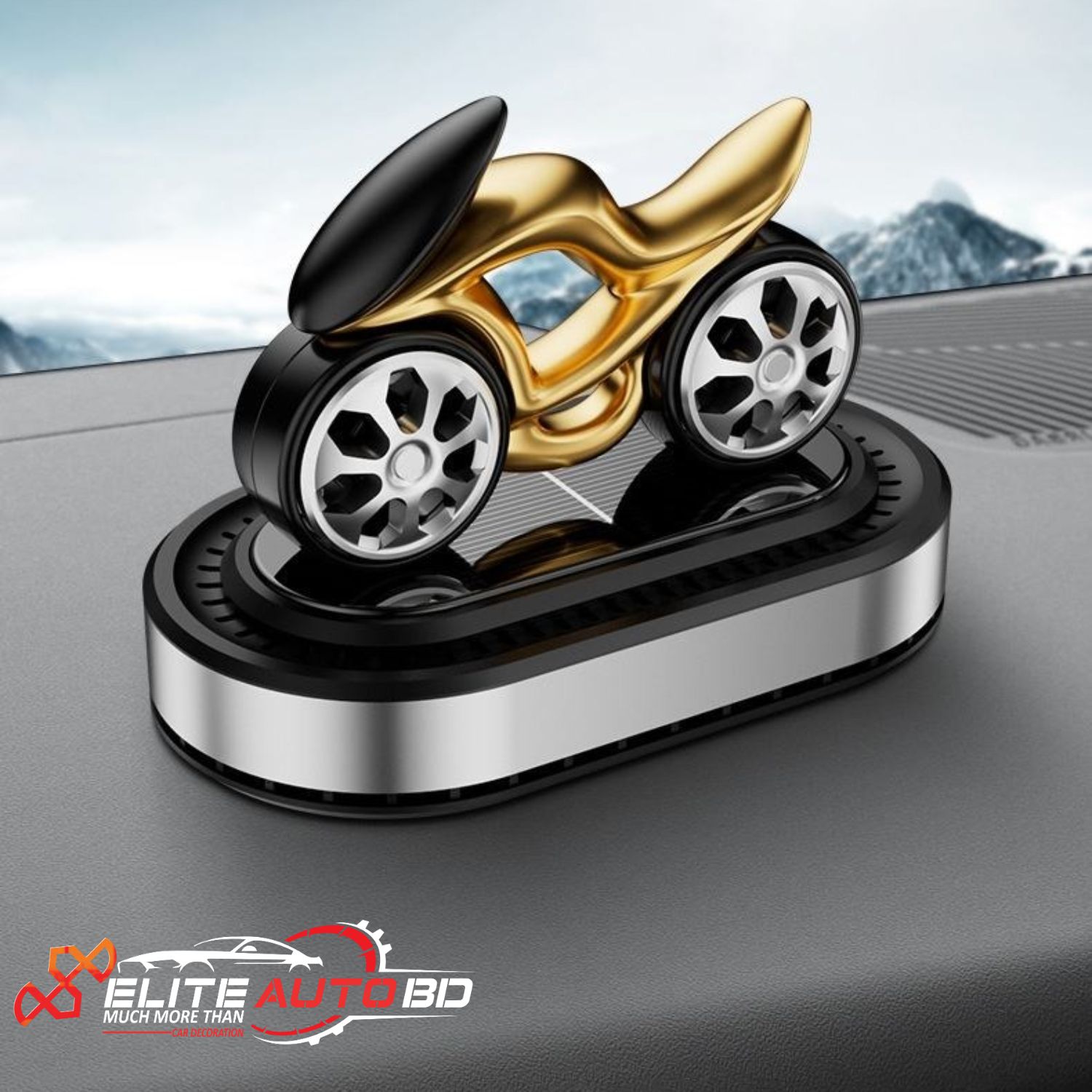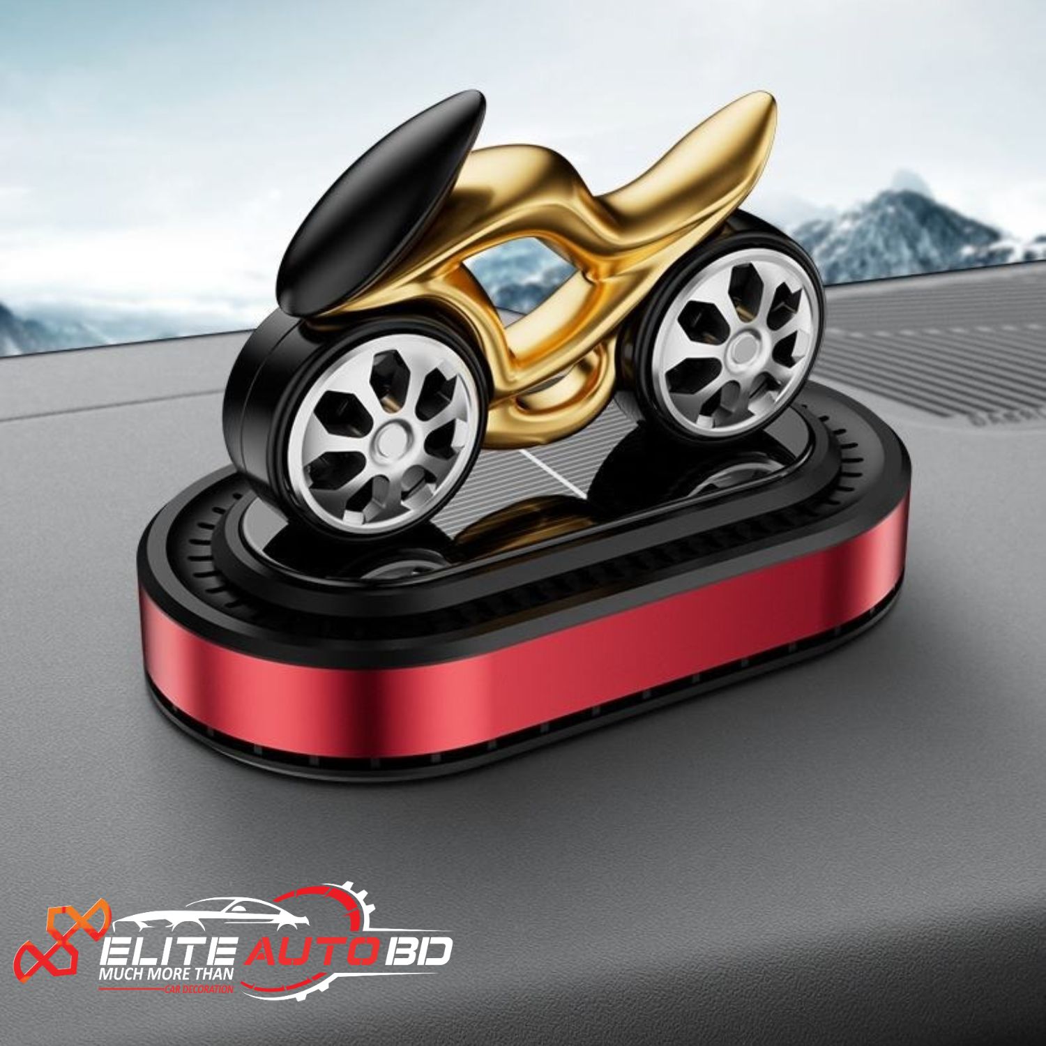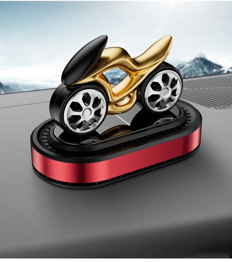 Bring freshness and style to your car with this motorcycle-shaped solar-powered air freshener. Designed to rotate with sunlight, it releases a natural, long-lasting fragrance that keeps your car interior fresh and inviting.