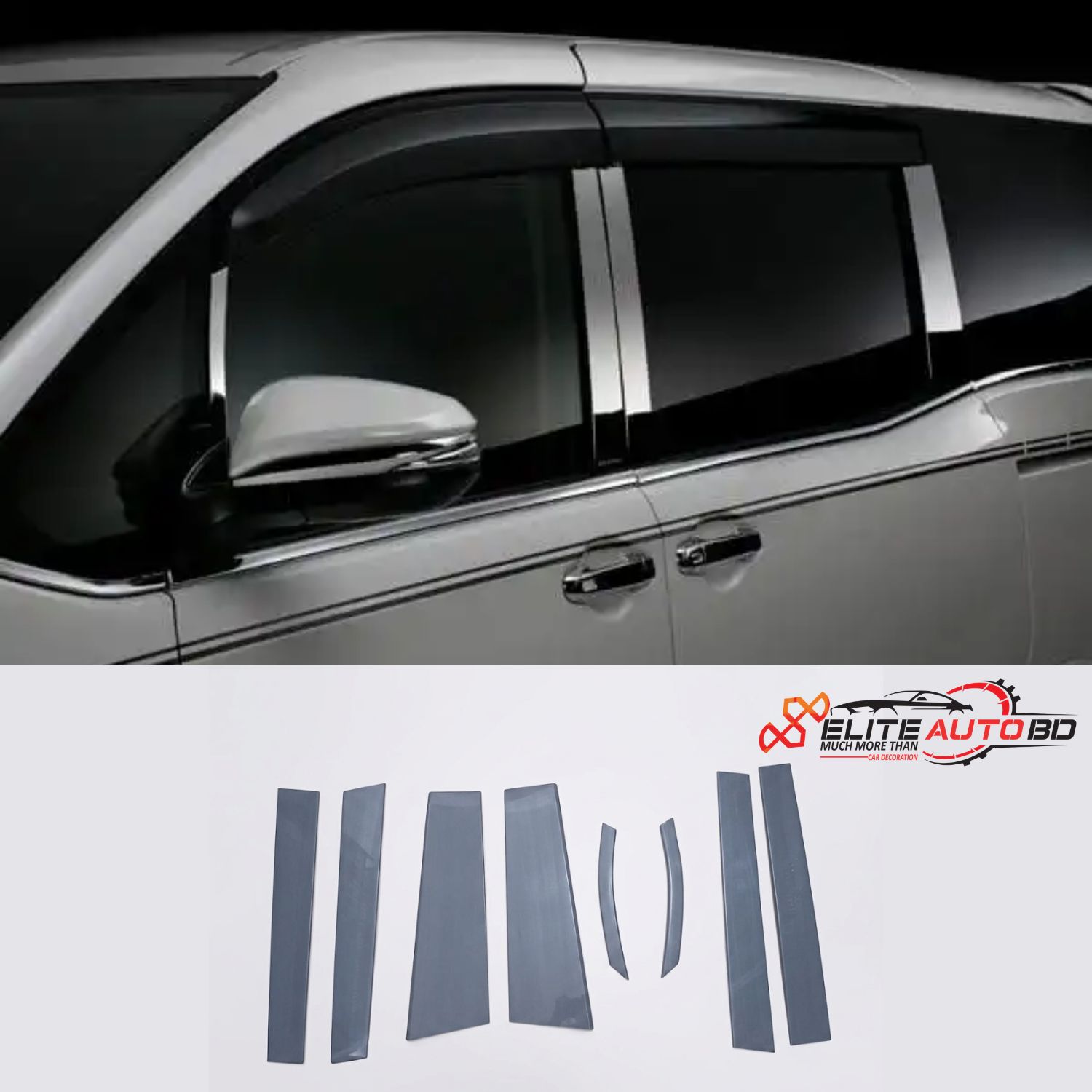 "8-Piece Toyota Noah & Voxy Window Pillar Cover Set – Chrome Mirror Finish Exterior Trim (2014-2021) | NVE 21 | Elite Auto BD