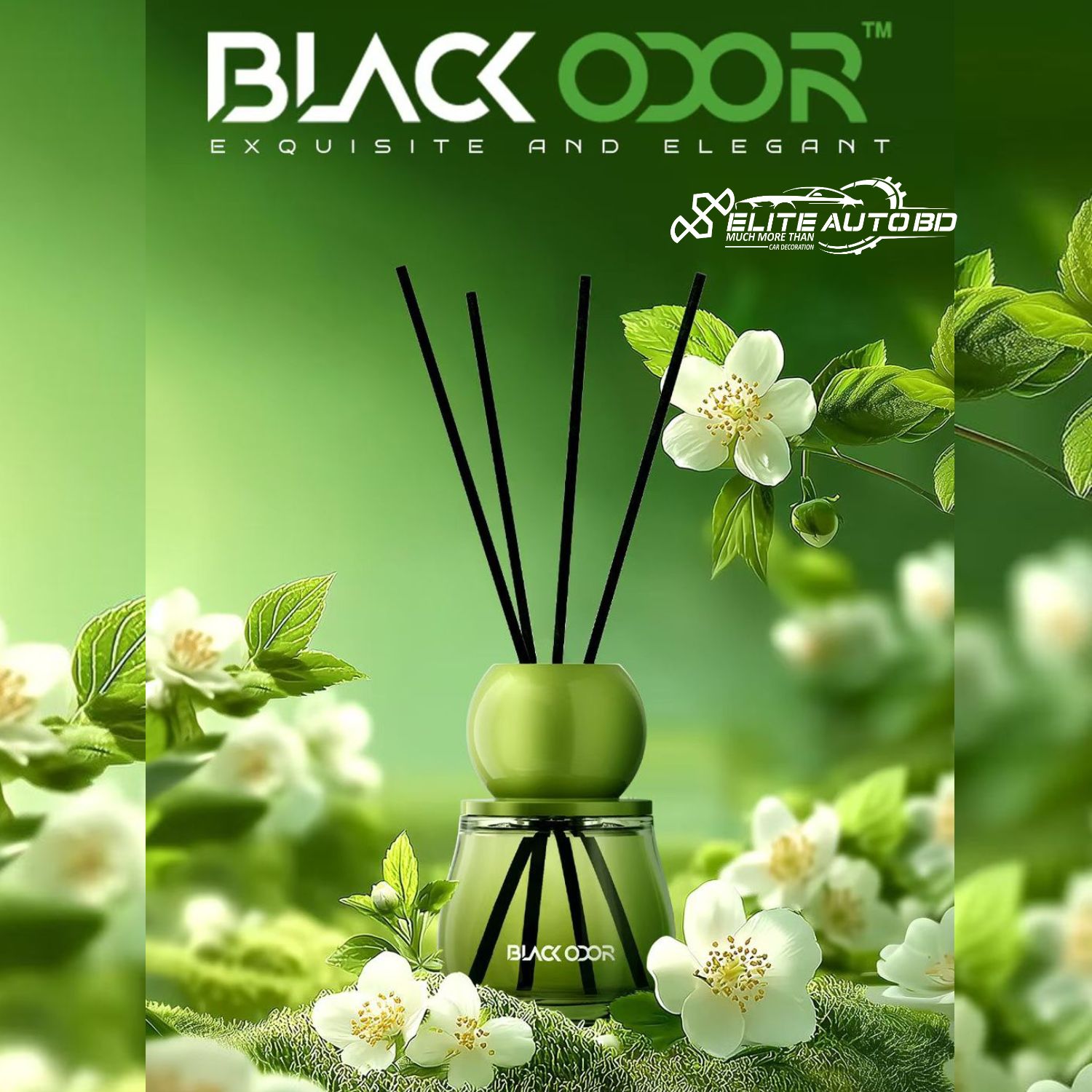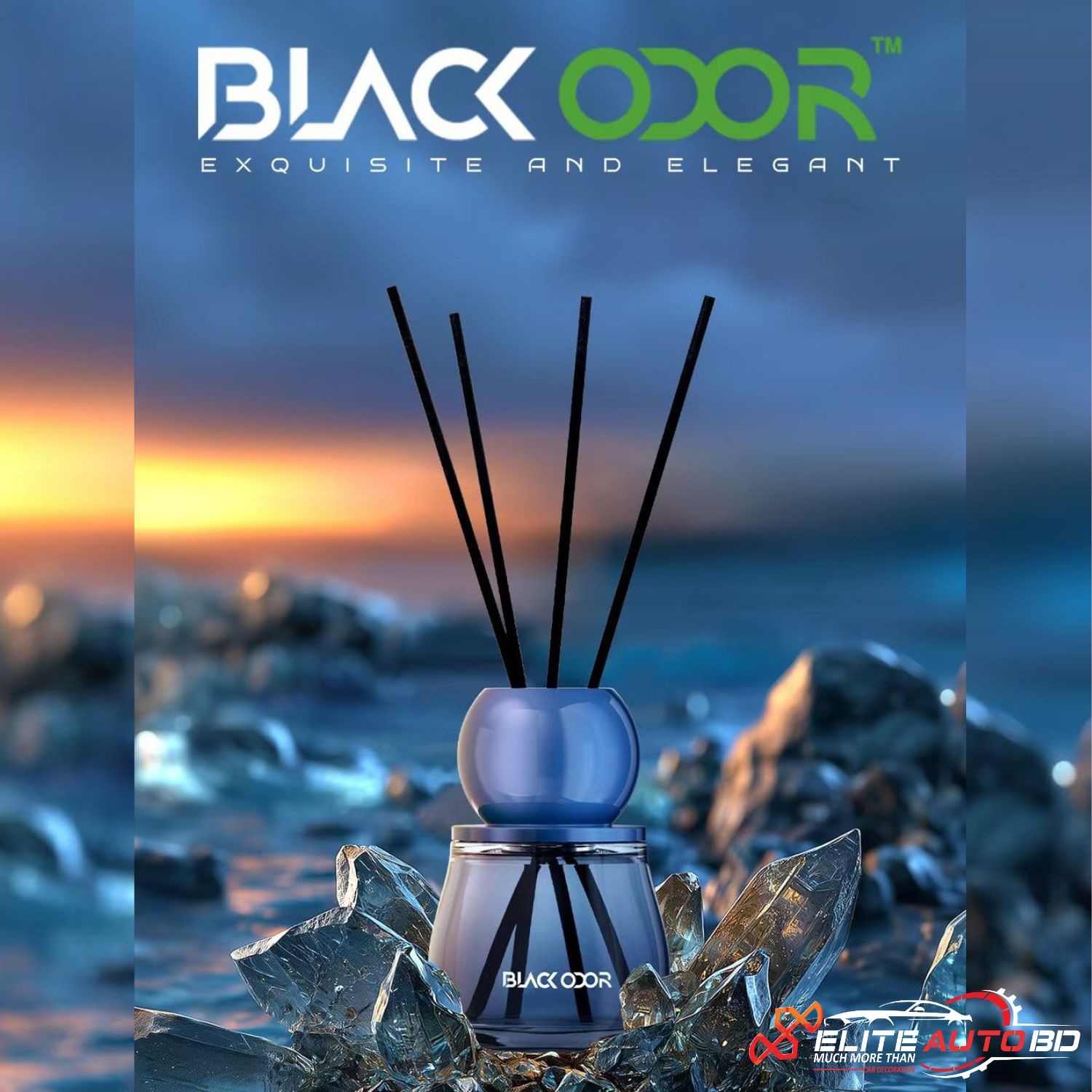 - Brand/Identifier: The product is associated with "Elite AutoBD" and has identifiers "PS 66" and "BLACK ODOR" visible on the packaging and bottle.