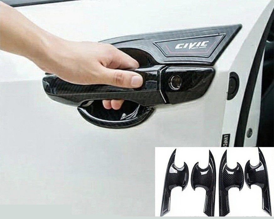 Carbon Fiber Pattern Side Door Handle Bowl Cover Set for Honda Civic – Stylish Protection Upgrade | CIVIC 02 | Elite Auto BD