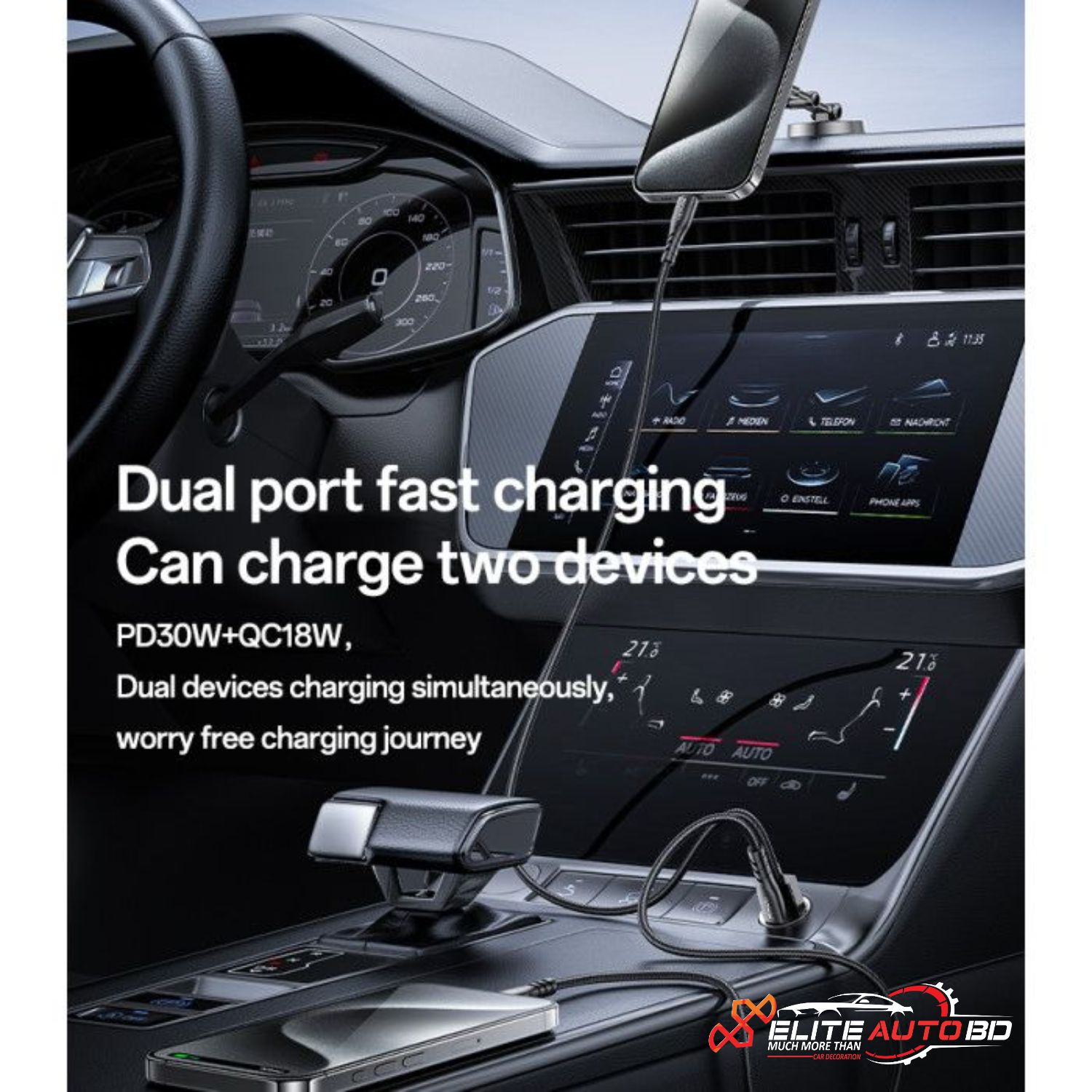 esido Y68 Aluminum Alloy Super Fast Car Charger - 30W Dual USB Adapter | Elite Auto BD