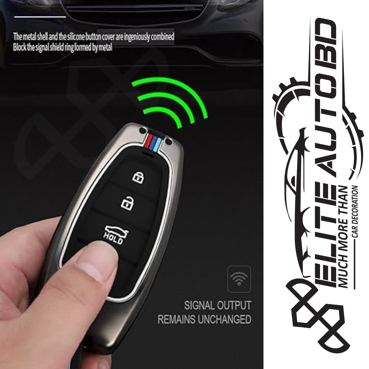 Premium Metal Car Key Fob Cover Case for Hyundai (4-Button) - Durable Zinc Alloy Protector Shell with Keychain | Santa Fe | Tucson | Sonata | TUCSON 01 | Elite Auto BD