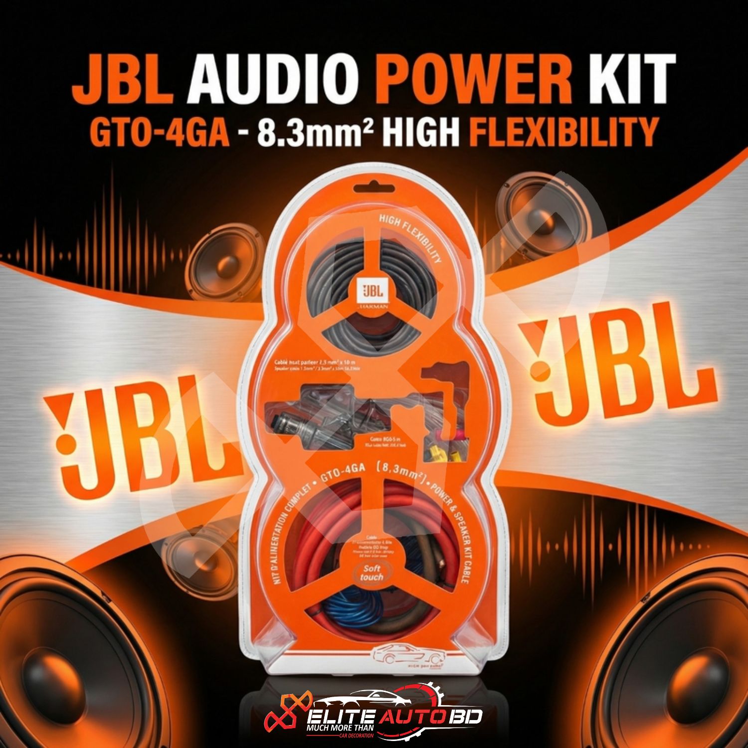 JBL GTO-4GA 8.3mm² Car Amplifier Wiring Kit – Premium Power & Speaker Cable Set | MLT 05 | Elite Auto BD