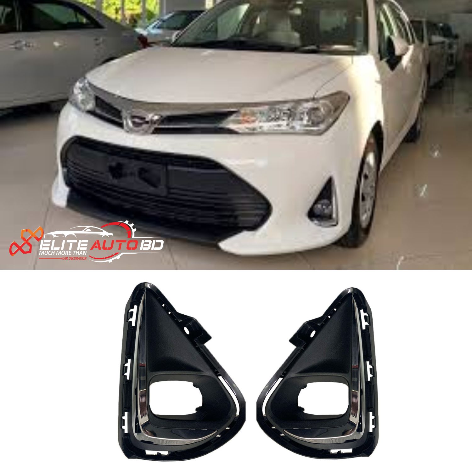 Toyota Corolla Axio Fog Light Cover (2017-2019) – Premium Front Bumper Fog Lamp Bezel with Chrome Trim | Axio 03 | Elite Auto BD