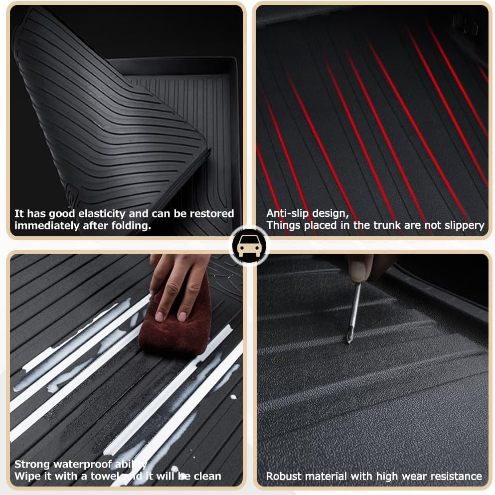 - 【Decorative Effect】The Boot Mat Has Design That Perfectly Matches The Original Car. Compared With The Exposed Trunk Of The Original Car, Installing Our Trunk Mat Can Improve The Beauty And Texture Of Your Car, Improve The Tidiness Of The Trunk, Trunk Cargo Mat Will Be Around The Clock Protect Your Car And Cargo Area From Dirt,Debris, Friction, The Effect Of Rain Etc.And Prevent Damage To The Original Interior. And Fully Improve The Storage Capacity Of The Trunk.