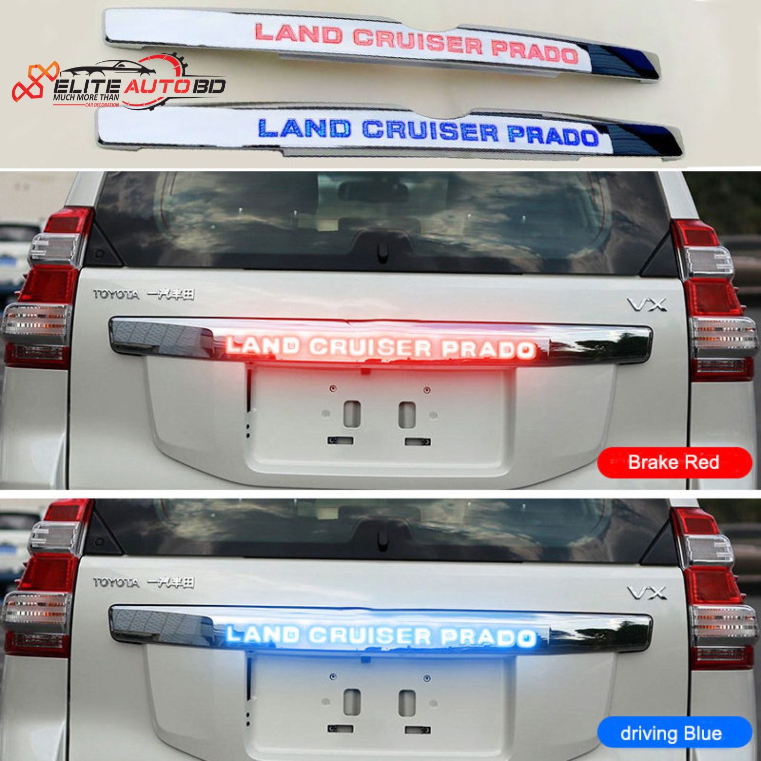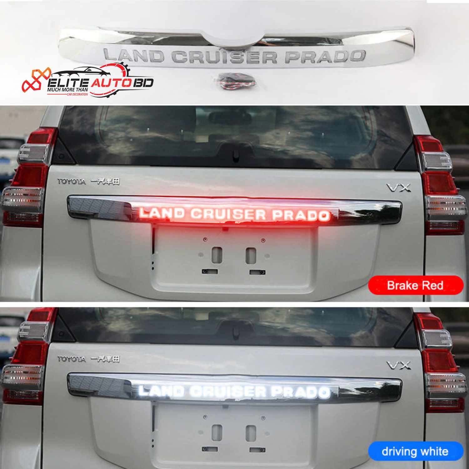 Toyota Land Cruiser Prado FJ150 LED Rear Trunk Garnish Plate | Premium Back Door Chrome Trim with Sequential Turn Signals | Prado 11 | Elite Auto BD
